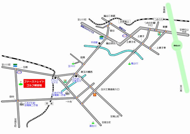 [電 車] JR八高線、明覚駅より車で3分 東武東上線、小川町駅より車で10分 東武東上線、武蔵嵐山駅より車で15分