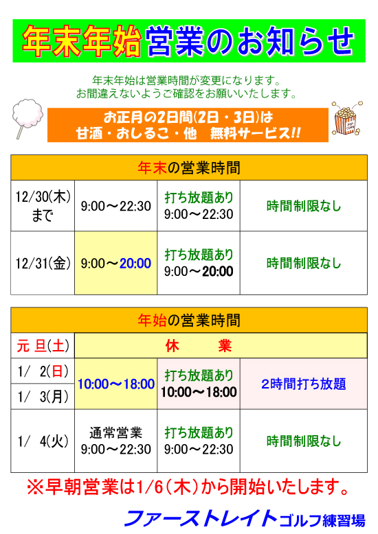 年末年始営業案内